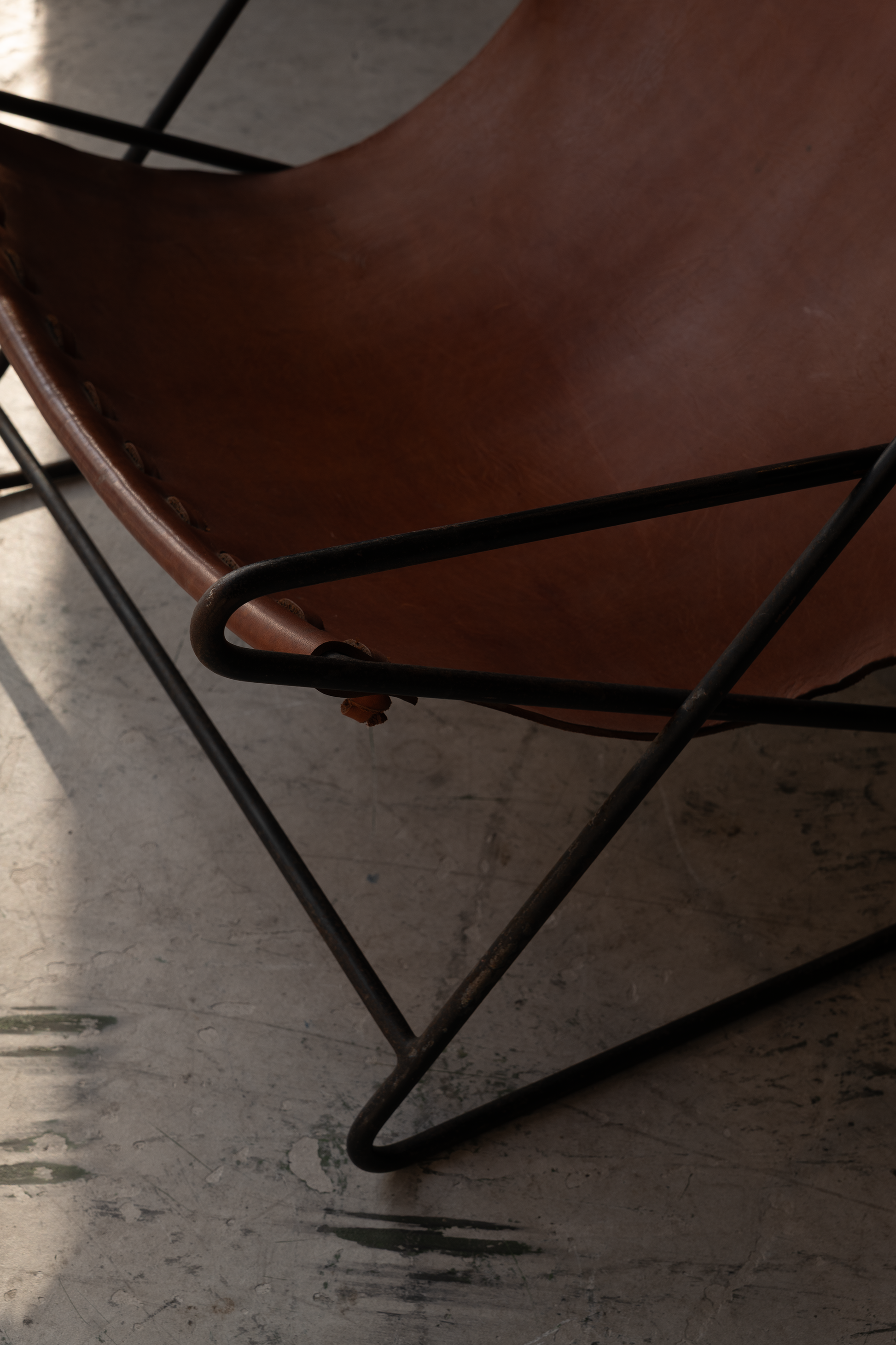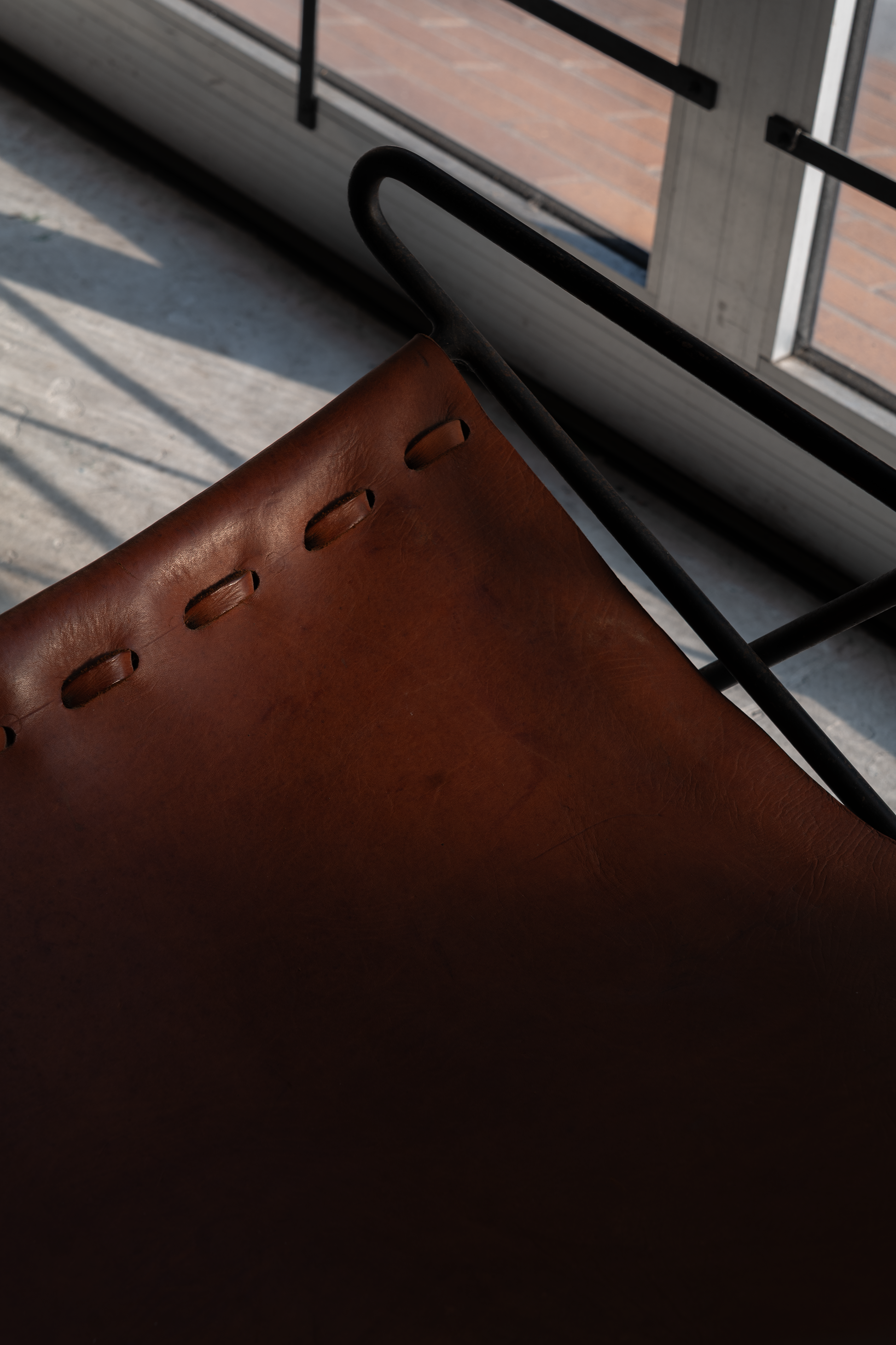 リナが設計したヴァレリア・P・シレル邸のためにデザインされたデッキチェア。鉄製のフレームとレザーの座面で構成された作品で、プールサイドに設置されました。